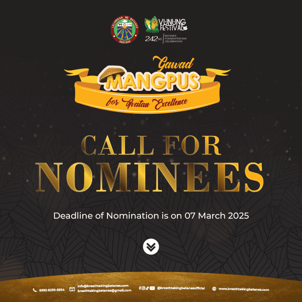 This annual and highest award conferred to an Ivatan by the Provincial government of Batanes aims to give honor and recognition to outstanding individuals who have made significant contributions to the Ivatan community How to Nominate:Anyone from the community may nominate.Download the Nomination Form at https://bit.ly/4161HBP or scan the QR code.Submit nominations in a sealed […]